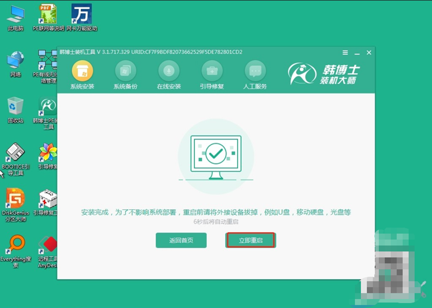 5.當前系統(tǒng)正在安裝和部署中,過程中請避免其他操作。安裝完成后,您只需點擊“立即重啟”,即可進入更新后的系統(tǒng)環(huán)境。