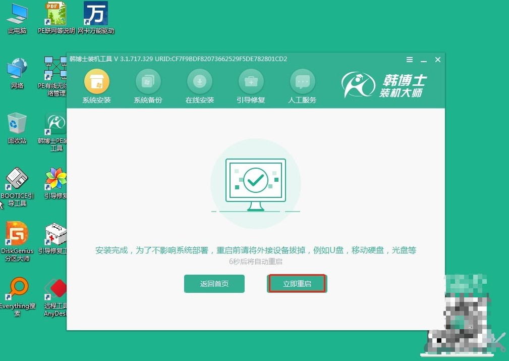 5.當前系統正在安裝,請在此過程中避免進行任何干擾操作,確保安裝順利完成。安裝完成后,按提示點擊“立即重啟”。